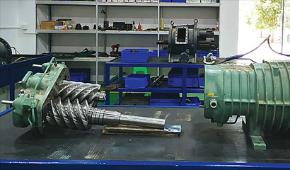 螺桿式壓縮機(jī)屬于精密設(shè)備,其陰陽轉(zhuǎn)子間隙、轉(zhuǎn)子與軸承座間隙(排氣間隙)通常只有0.03-0.10mm(據(jù)機(jī)型而定)。這對維修工具設(shè)備、軸承精度、配件加工精度、維修裝配工藝及潔凈度等都有非常高的要求。
